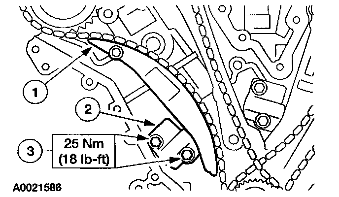 38. Position the LH timing chain and guide and install the bolts.