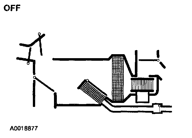 - The panel airflow door and the footwell airflow door are in the no vacuum position so that most of the incoming air is directed to the windshield defroster hose nozzle. There is also airflow to the side window demister and hose.
