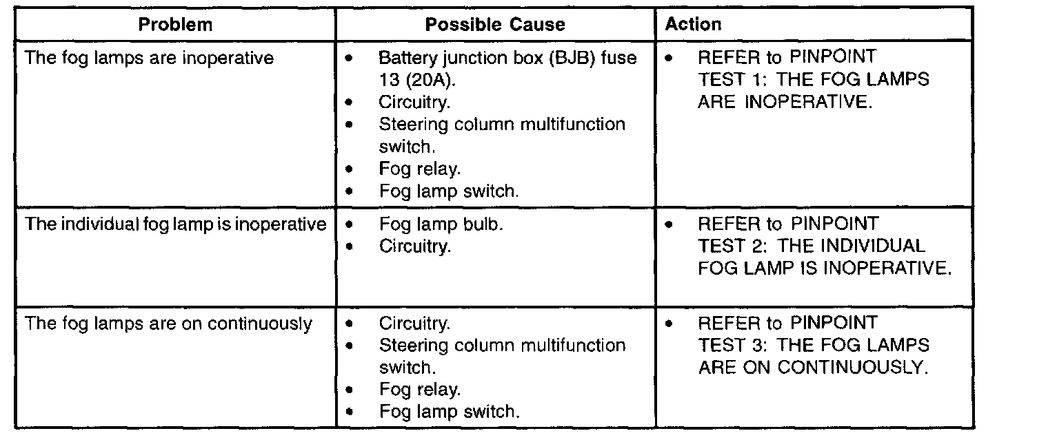 Troubleshooting Index - Fog Lamps:
