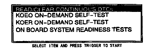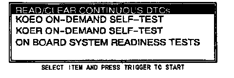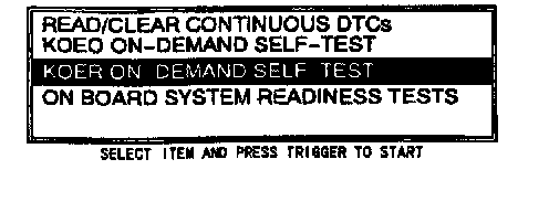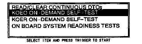2. Move the cursor to KOEO ON-DEMAND SELF-TEST. Press the trigger key to enter this selection.
