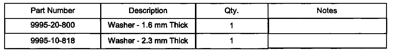 Based on the severity of I/P dip, add washers as required (not to exceed 4 mm). Part number 9995-20-800 is 1.6 mm thick washer and 9995-10-818 is 2.3 mm. The washers can be combined to get 3.9 mm.