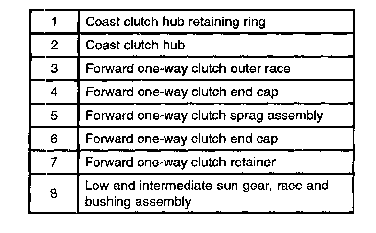 3. Remove the forward one-way clutch outer race and sprag assembly with end caps.