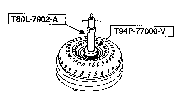 1. Install special tools into the turbine splines in the torque converter.