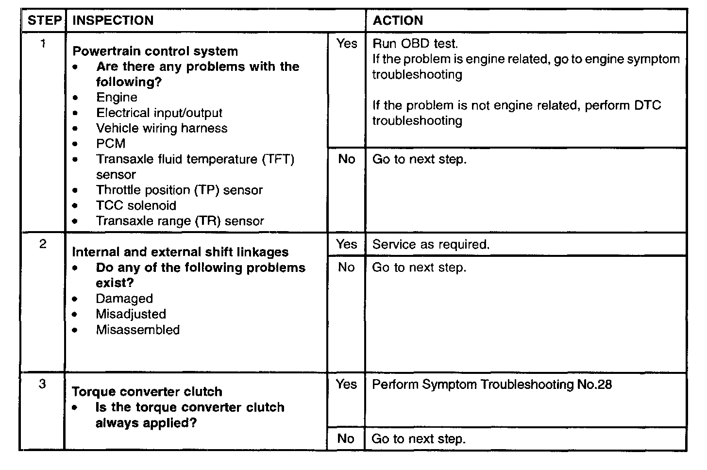 Test - Auto Transaxle Troubleshooting Index