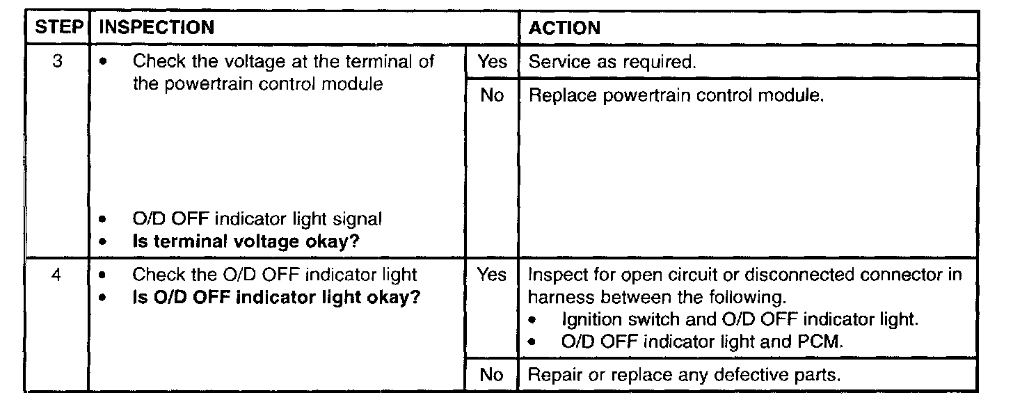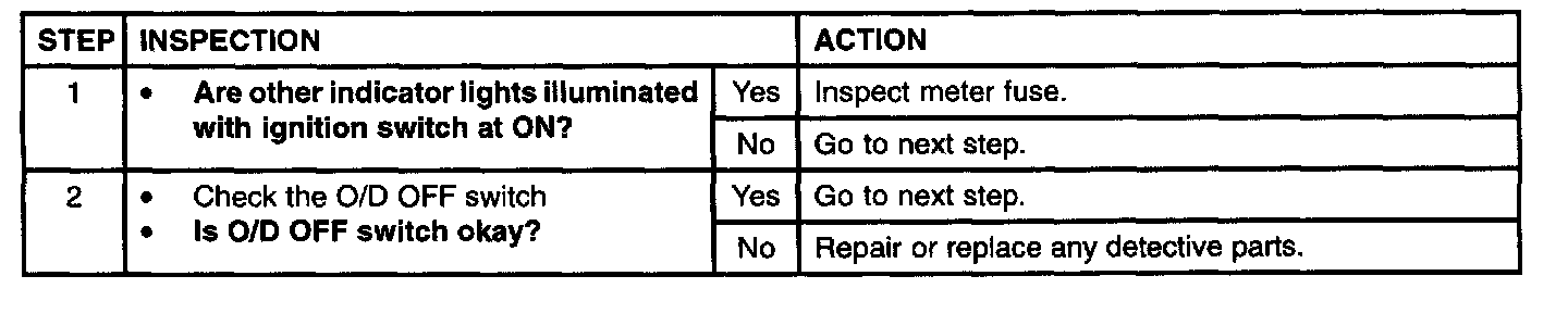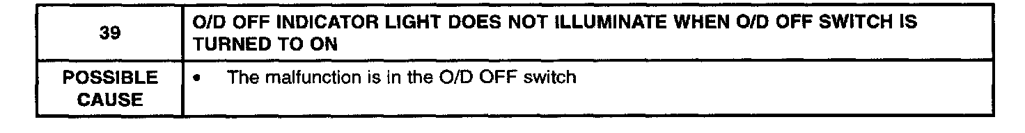 Test 39: O/D Off Indicator Doesn't Illuminate When Switch Is on