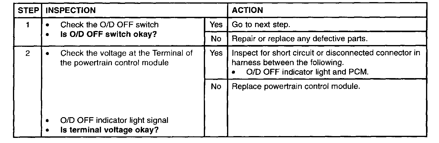 Test 40: O/D Off Indicator Illuminates When O/D Switch ISN't on
