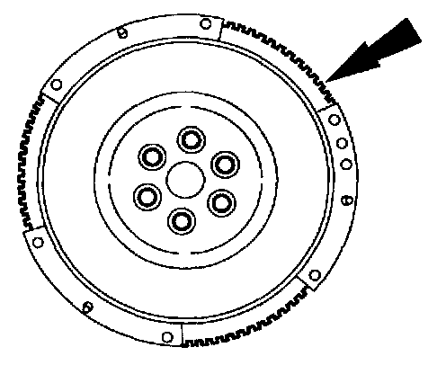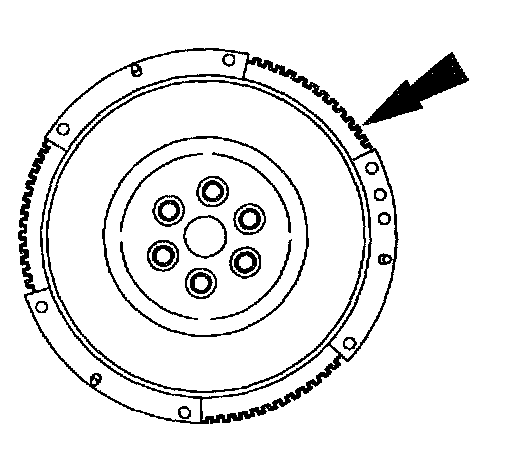 1 Evenly heat the flywheel ring gear and use a brass drift to drive the flywheel ring gear off the flywheel.
