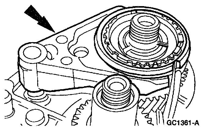 2 Remove the reverse synchronizer blocking ring retainer assembly.