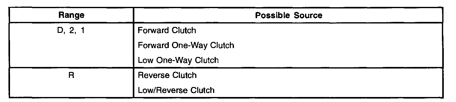 For example when the transaxle range selector lever is in a forward gear range (D, 2, 1 ) a no-drive condition can be caused by an inoperative forward clutch.