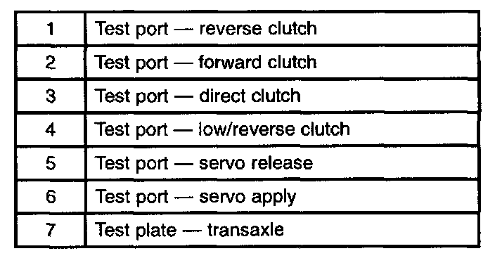 SPECIAL TESTING PROCEDURESThe special tests are designed to aid the technician in diagnosing the hydraulic and mechanical portion of the transaxle.