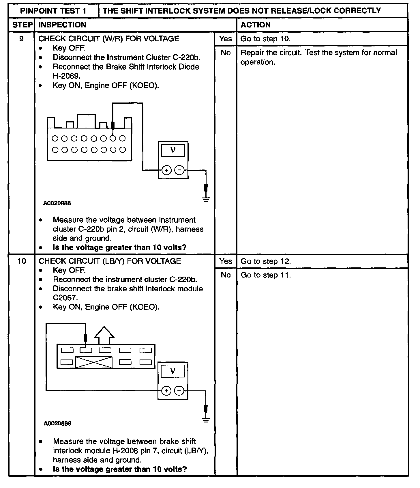 PINPOINT TEST 1: THE SHIFT INTERLOCK SYSTEM DOES NOT RELEASE/LOCK CORRECTLYStep 1 and 2
