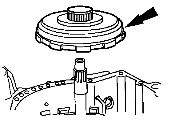 Note: The torque converter is filled with fluid. Position it on a table so that fluid will drain out of the torque converter into a drain pan.