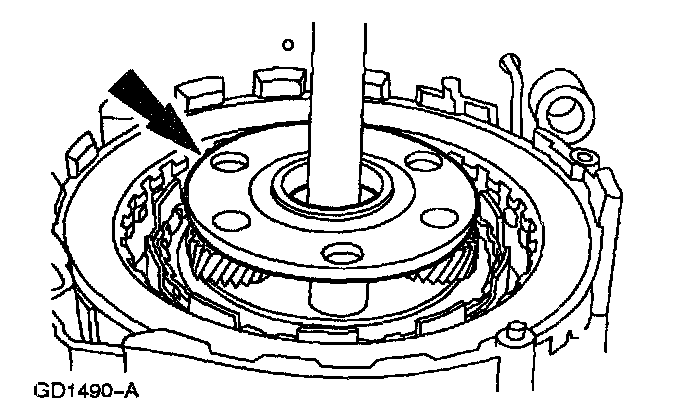 Note: The thrust bearing may adhere to the reverse/overdrive sun gear and shell.
