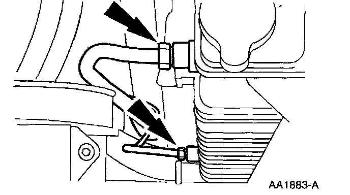 Note: To avoid disturbing the transmission oil cooler fittings, use a backup wrench.