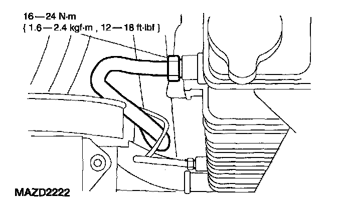 Note: To avoid disturbing the transmission oil cooler fitting, use a backup wrench.