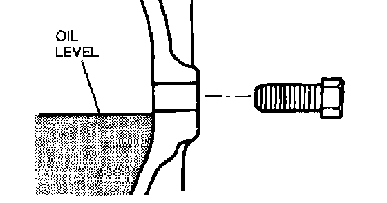 1. Remove the oil level plug and washer.