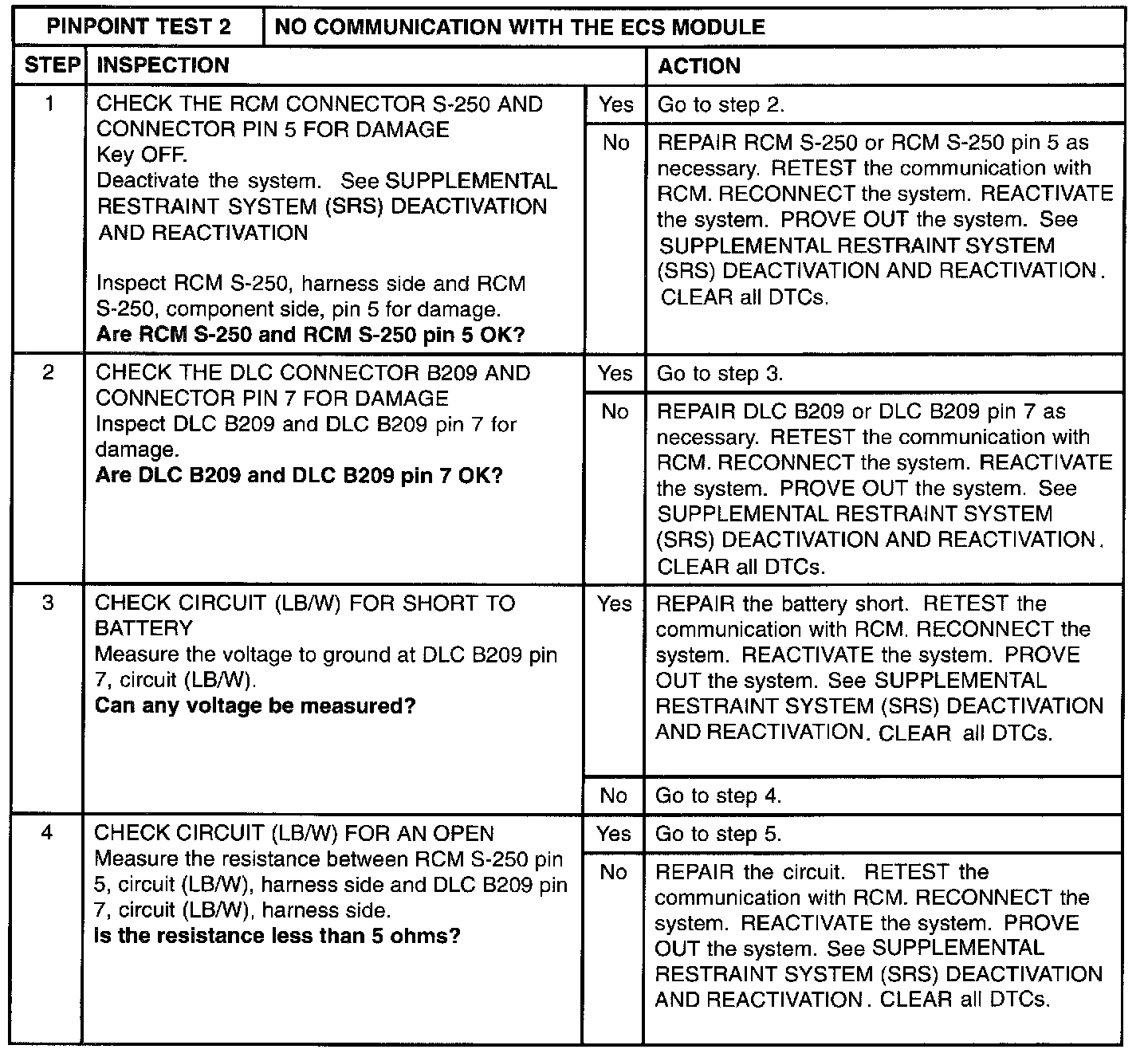 PINPOINT TEST 2: NO COMMUNICATION WITH THE ECS MODULENormal Operation