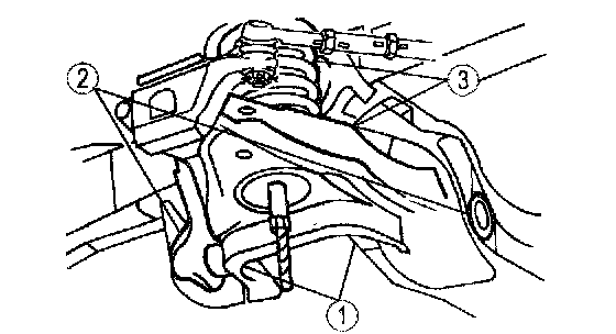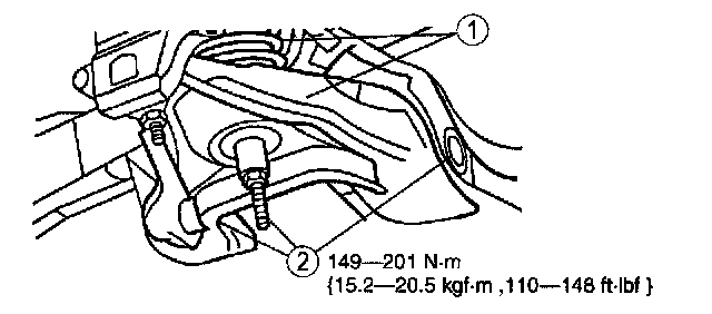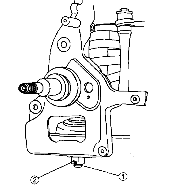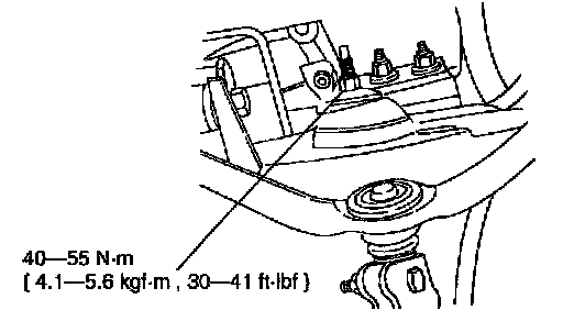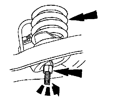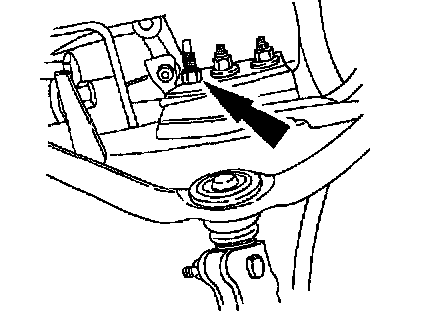 Note: The forward front suspension lower arm nut must be tightened first while the control arm is held at the curb position ride height.