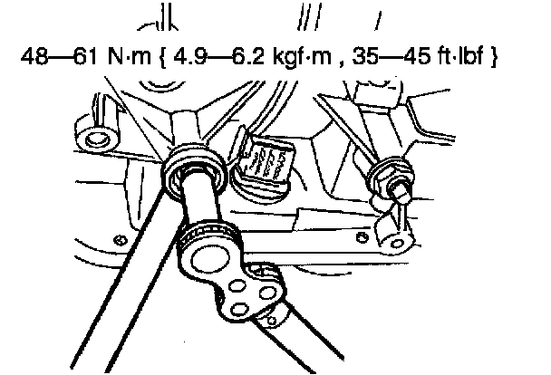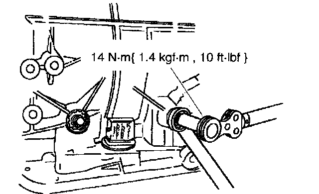 3. While holding the overdrive/front band adjustment screw stationary, tighten the overdrive/front band locknut using a 19 mm wrench.