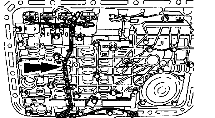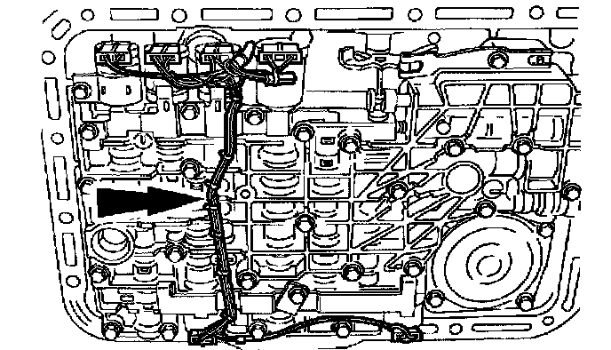 Caution: The solenoid clamp must be installed in the TCC and EPC solenoid grooves, shift solenoid pockets and the No. 204 plug.