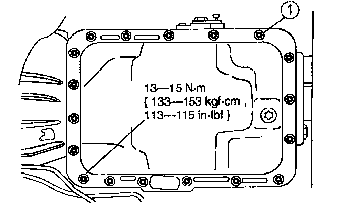Note: Use a crisscross sequence to tighten the transmission oil pan bolts.