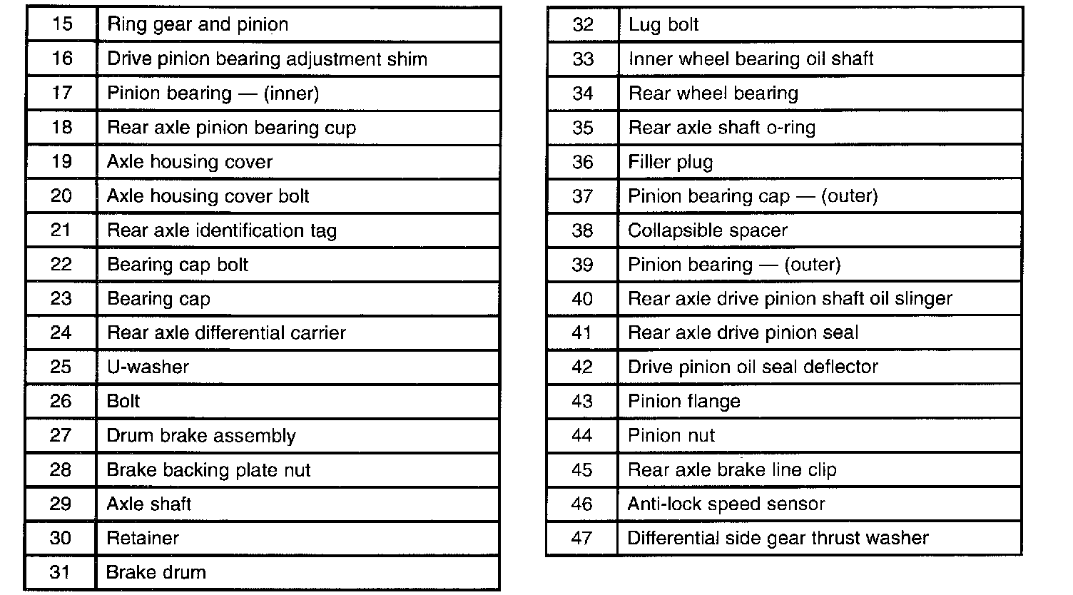 STANDARD REAR AXLE AND DIFFERENTIAL STRUCTURAL VIEW