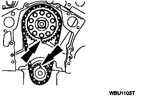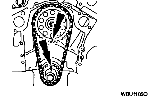 2. Install the timing chain, camshaft sprocket and crankshaft sprocket as an assembly.