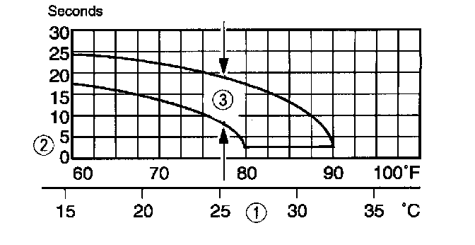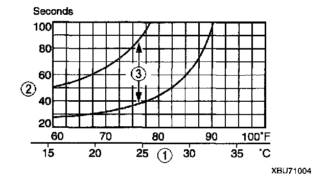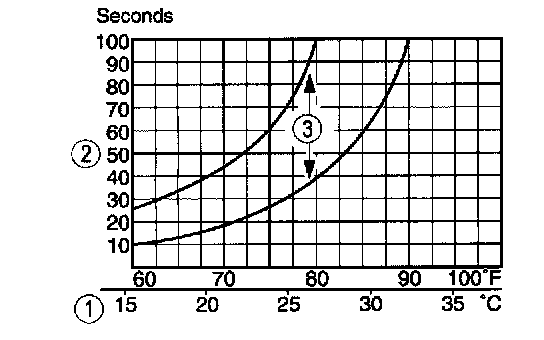 3. The system performance is acceptable when the recorded time falls between the upper and lower limits shown below.