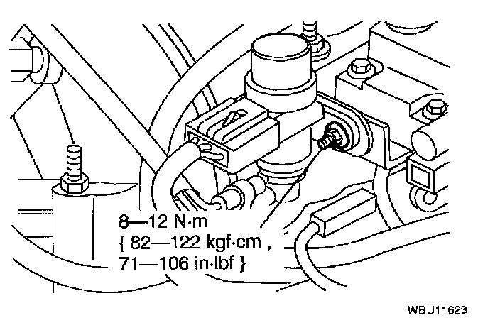 4. Remove the nut and the EGR vacuum regulator solenoid.