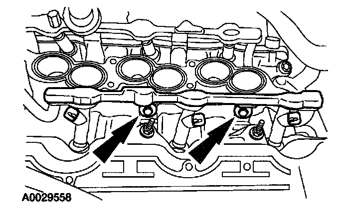 - Remove the fuel rail and fuel injectors as assembly.