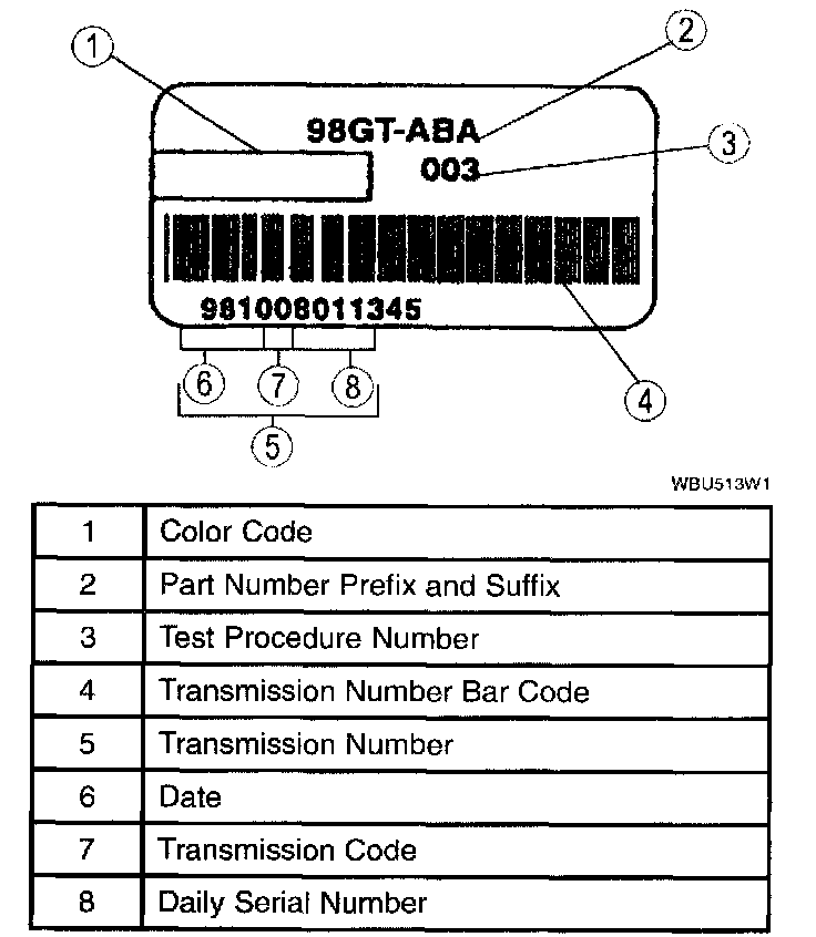 Automatic Transmission Identification TagsI.D. Tag Located on Transmission Case