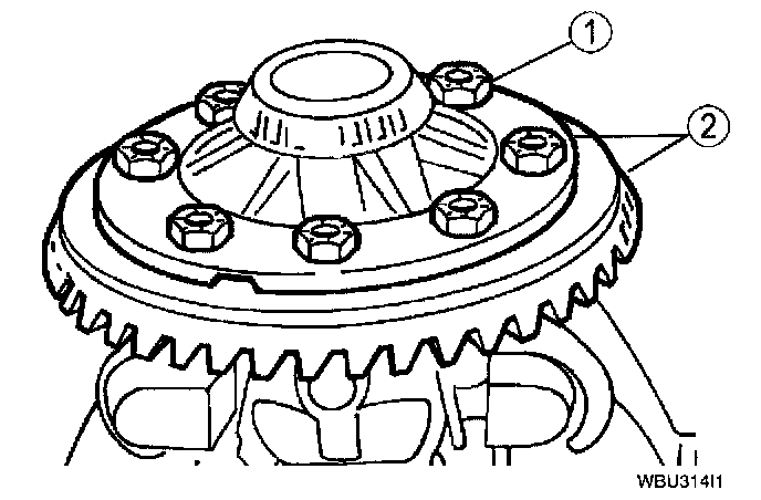 10. Install the remaining ring gear bolts.