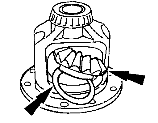 6. Remove the differential side gears and the differential side gear thrust washers.