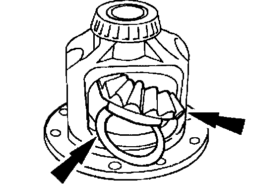 5. Engage the differential pinion gears between the differential side gears.