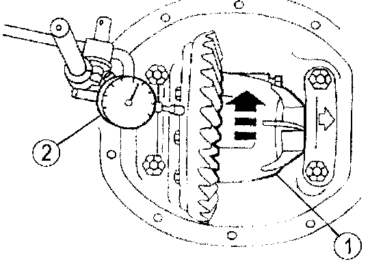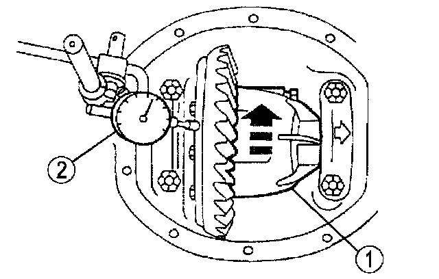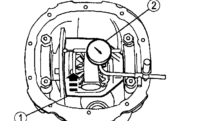 Note: If the ring gear runout exceeds specification, the cause may be a warped ring gear, a damaged differential case, loss of differential bearing preload or a damaged axle housing.
