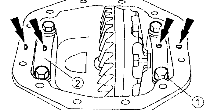 Caution: The matched numbers or letters stamped on both the differential bearing caps and axle housing must correspond upon assembly.