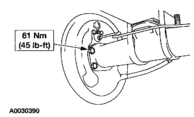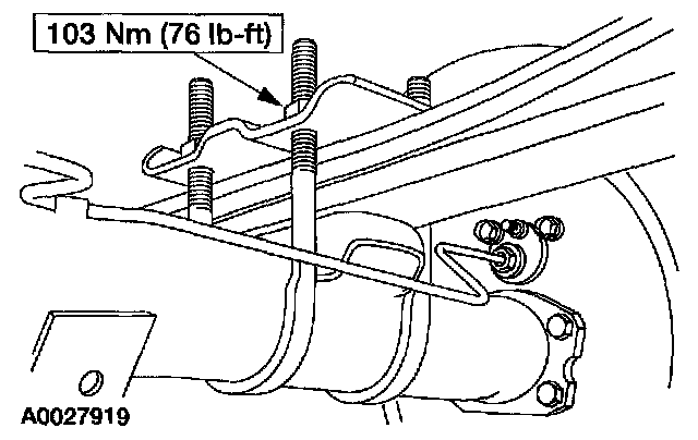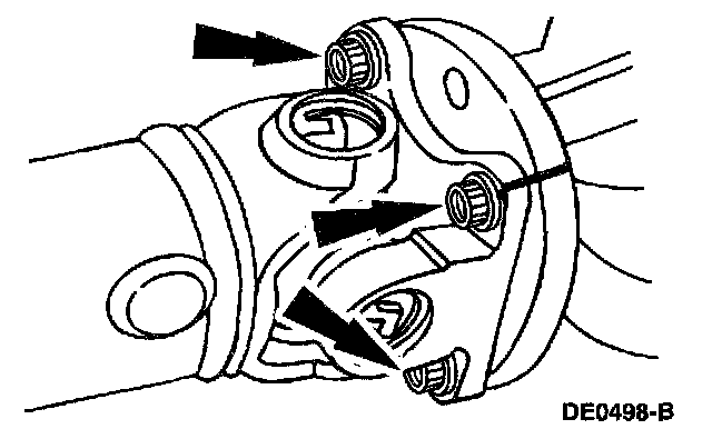 Caution: If new bolts to retain the propeller shaft to the rear axle are not available, coat the original bolts with threadlock.