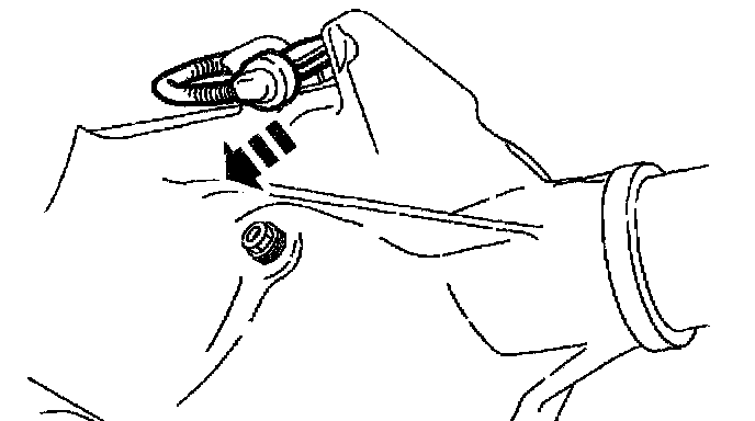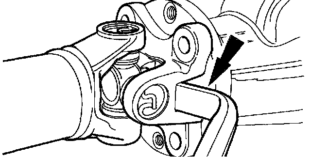 Caution: The propeller shaft centering yoke fits tightly on the rear axle companion flange pilot. Never hammer on the propeller shaft or any of its components to disconnect the yoke from the flange. Pry only in the area shown with a suitable tool to disconnect the yoke from the flange.
