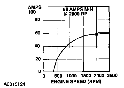 6. With the engine running at 2,000 rpm, adjust the tester load bank to determine the output of the generator. Generator output should be at least 58 amps.