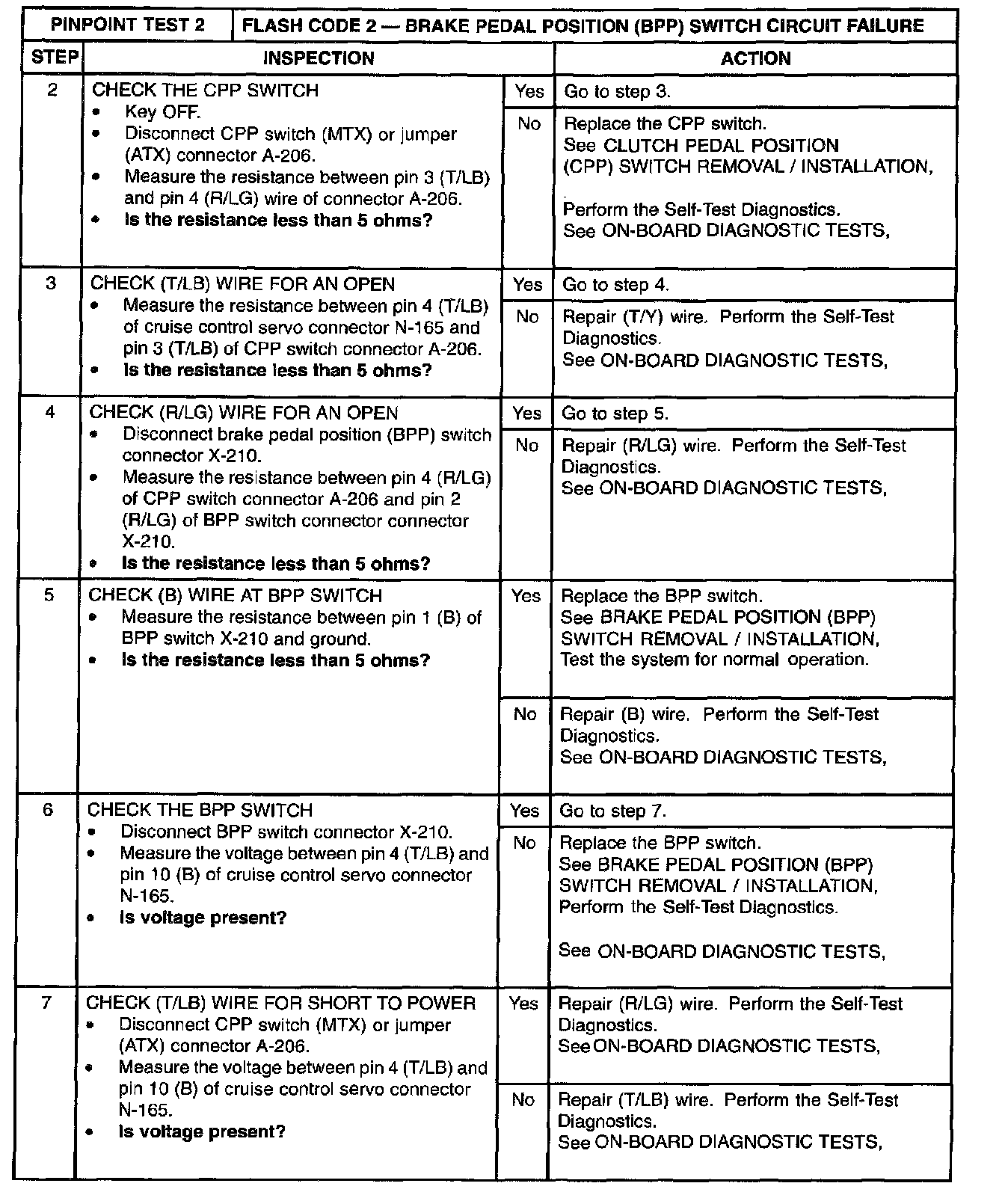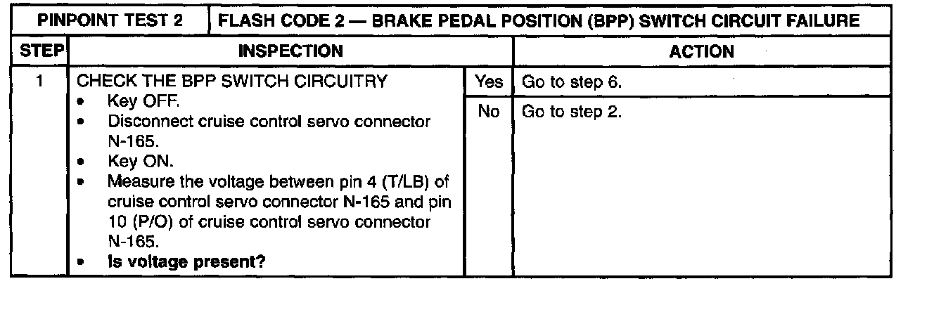 2: Flash Code 2-Brake Pedal Position(BPP)Switch Circuit Failure