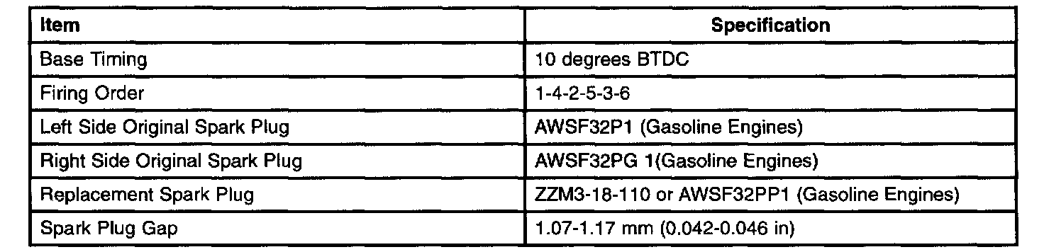 Engine Ignition Specifications