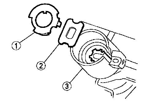 8. Remove the bearing retainer (1), bearing (2) and gear 3. Thoroughly clean all drill shavings from the steering column and inspect it for damage.