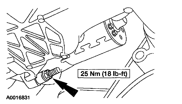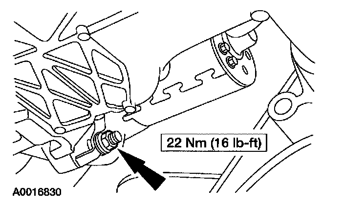 6. Remove the bolt, the stud and the starter motor.