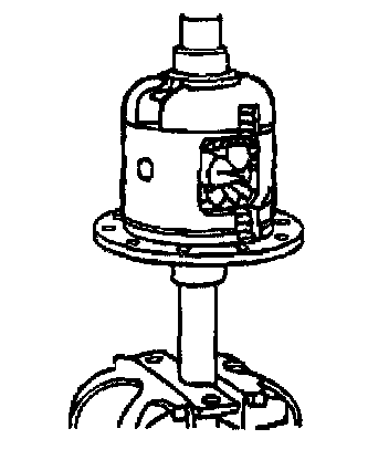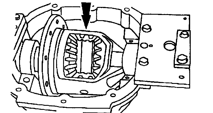 Note: Push the differential case down to fully seat the differential bearing cups in the axle housing.