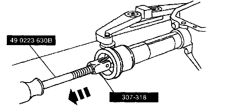 8. Use Bearing Remover ST 307-318 or equivalent and Impact Slide Hammer ST 49 0223 630B and Adapter ST 49 UN1 1 101 to remove the RH axle bearing.