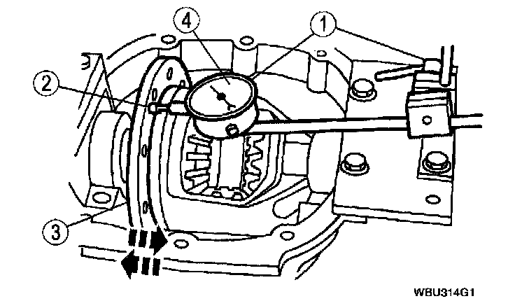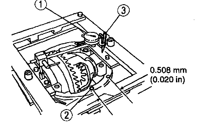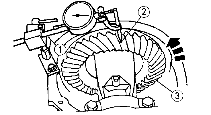 3) Turn the ring gear without turning the pinion gear and record the measurement.