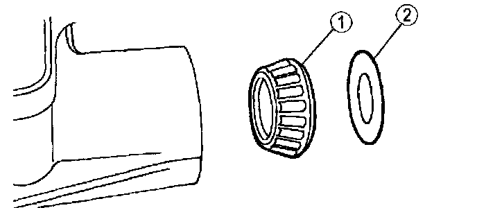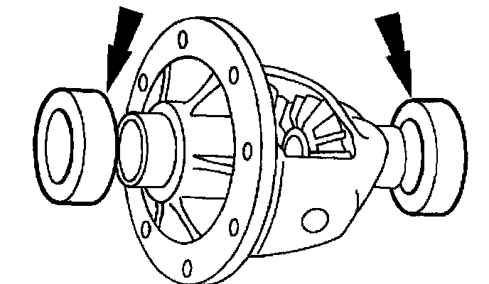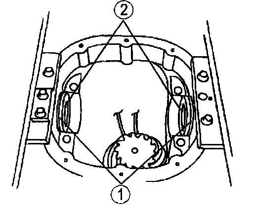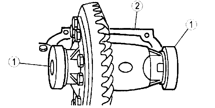 1) If removed, apply a light coating of axle lubricant meeting specification API Service GL-5 to one side of the differential bearing shims to help hold them in place.