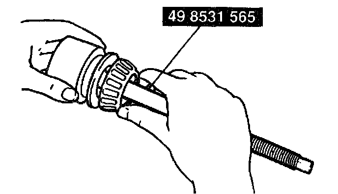 2. Install the original oil slinger and rear bearing onto the Middle Pinion ST 49 8531 565.