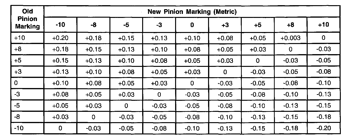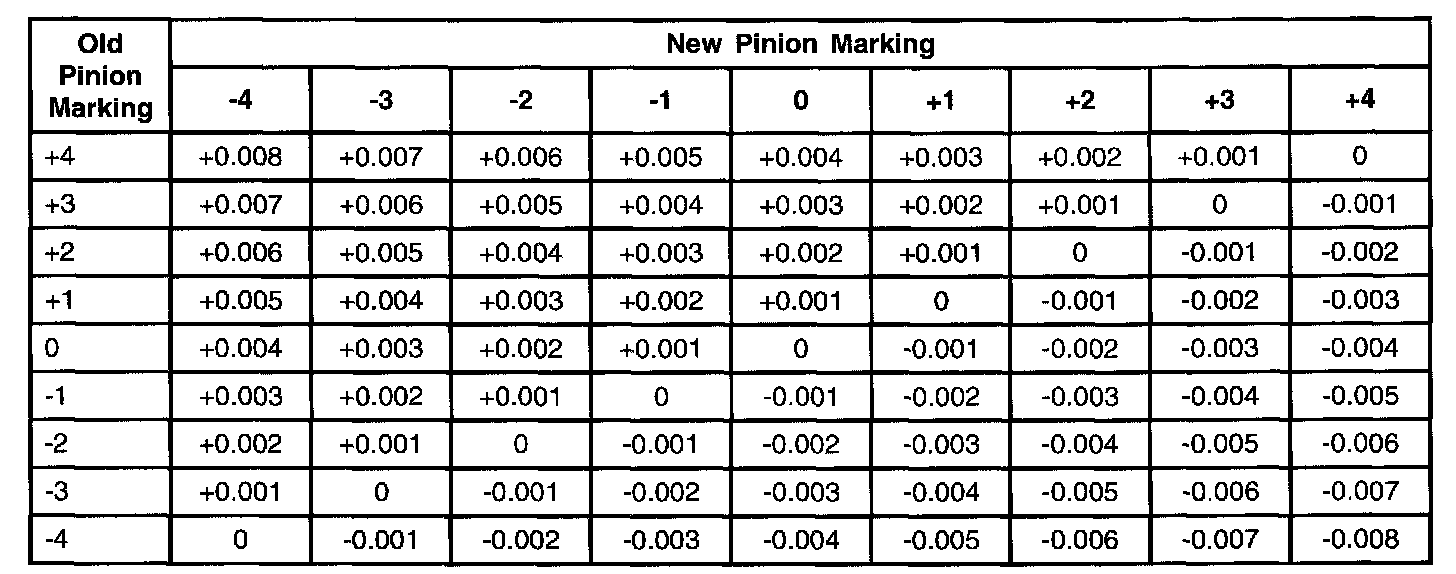 If the drive pinion is marked with a minus reading, this amount must be added to the thickness dimension.
