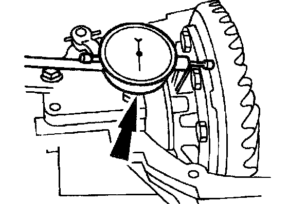 2) Install Dial Indicator with Bracketry and Clutch Housing Alignment Adapter ST 308-021.